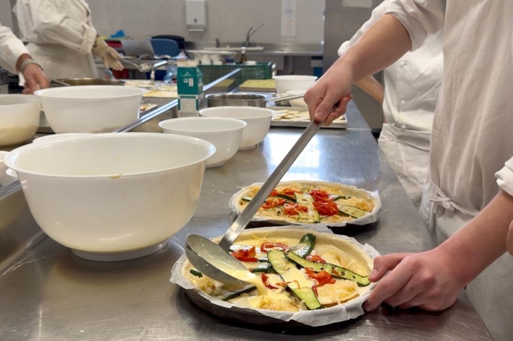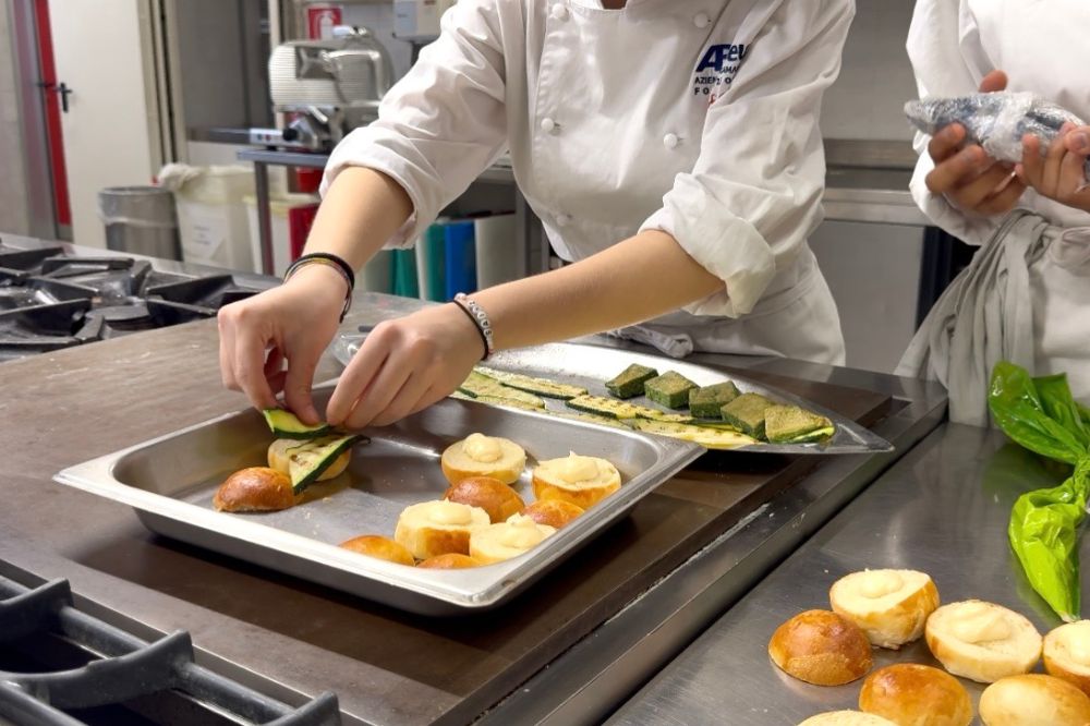 I nostri allievi di 1^C con il prof. Bergamelli, nel laboratorio di cucina, durante un’unità di apprendimento hanno preparato un menù gustosissimo: miniburger, torta salata zucchine, cipolle e peperoni, melanzane fritte ripiene e infine torta rustica alle mele!