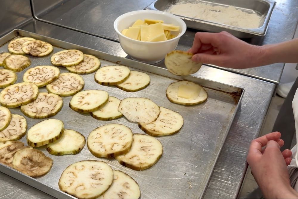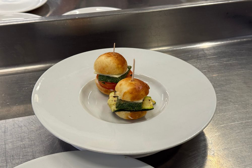 Ora che i panini al latte sono pronti bisogna passare all’assemblaggio! Gli studenti hanno realizzato due opzioni di miniburger.