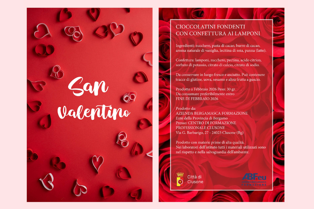 Ricorda: pubblica una storia o un post sui social con i cuori di cioccolato che ti sono stati donati e tagga il profilo Instagram di Azienda Bergamasca Formazione (@abf.clusone), usa l’hashtag #clusoneinlove