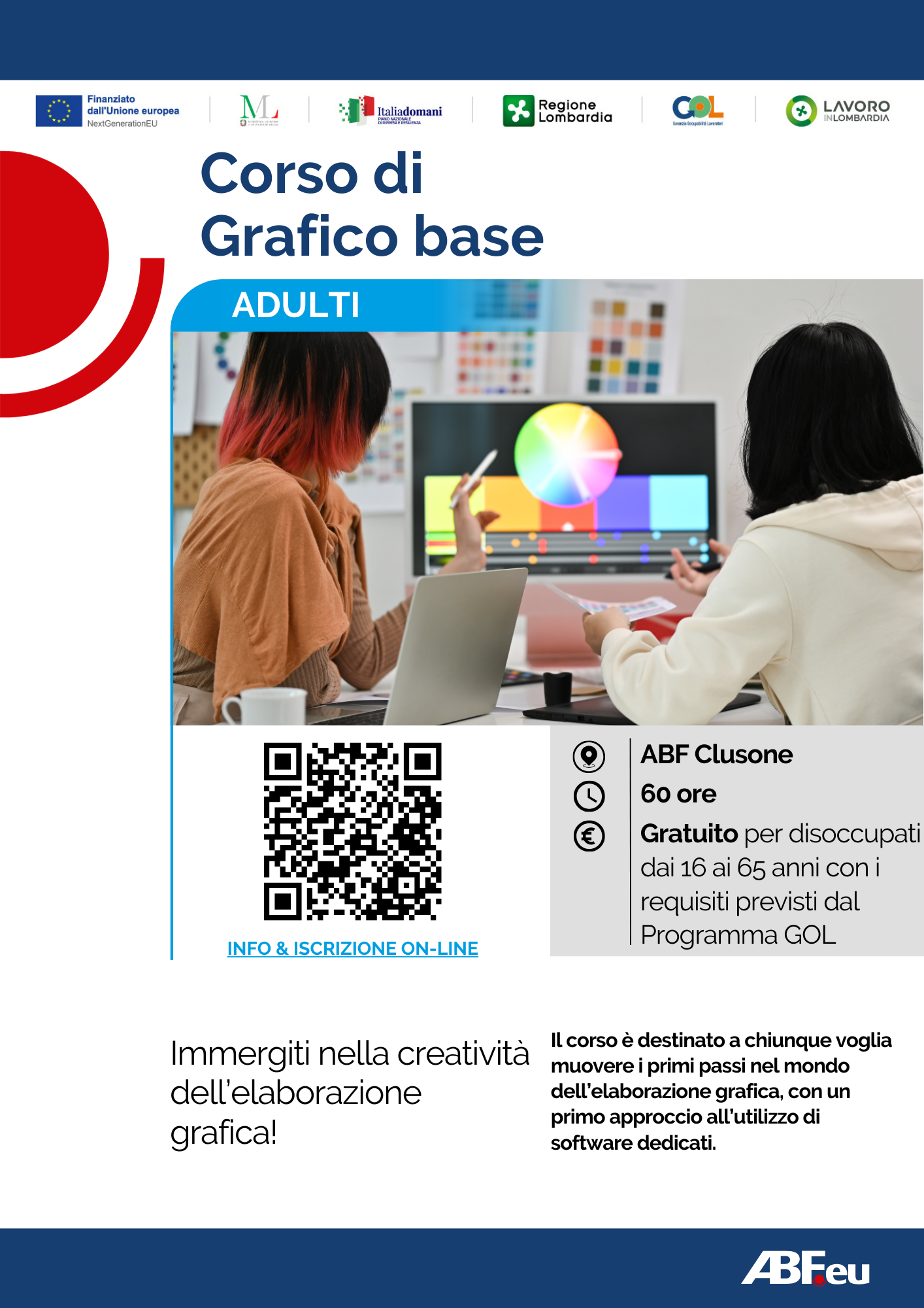 ABF Clusone organizza un corso di Grafico base destinato a chiunque voglia immergersi nel mondo creativo dell’elaborazione grafica, con un primo approccio all’utilizzo di software grafici dedicati.