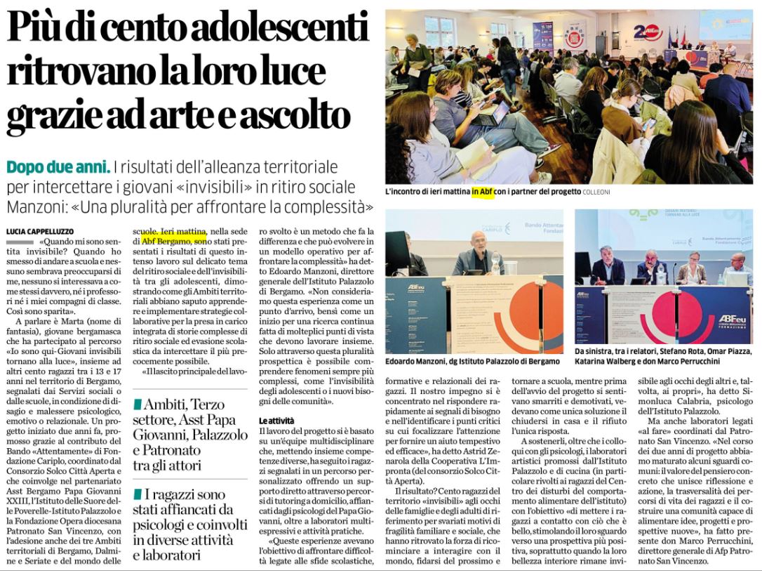 | 27/09/2025 | L’Eco di Bergamo | Più di cento adolescenti ritrovano la loro luce grazie ad arte e ascolto |
