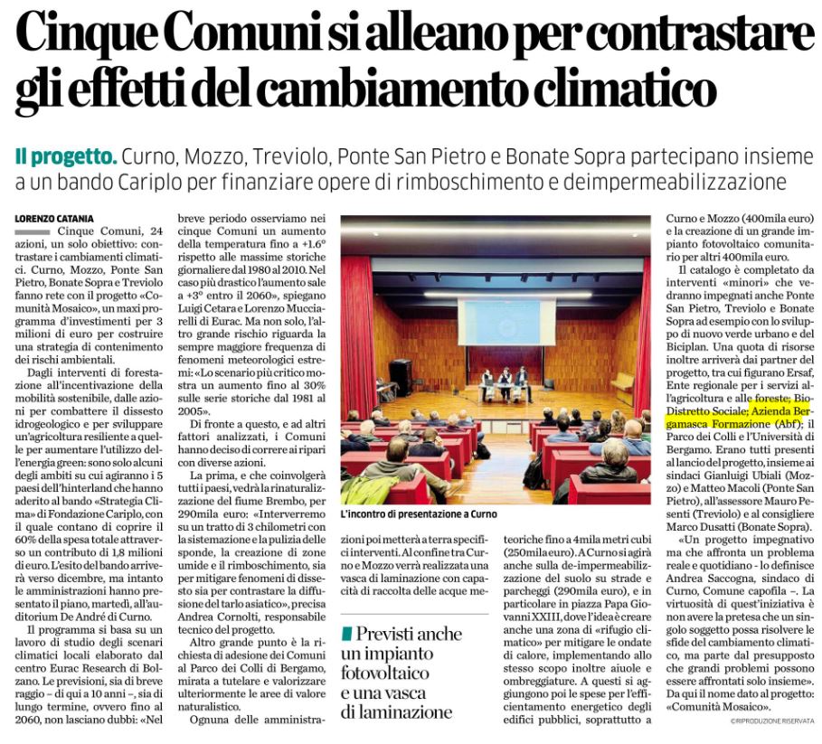 | 12/10/2025 | L’Eco di Bergamo | Cinque Comuni si alleano per contrastare gli effetti del cambiamento climatico |