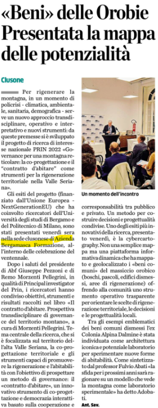 | 03/03/2026 | Eco di Bergamo | Beni delle Orobie, presentata la mappa delle potenzialità |