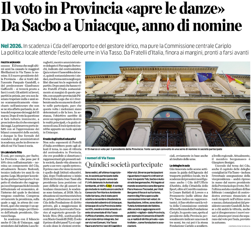 | 05/03/2026 | Eco di Bergamo | Il voto in Provincia “apre le danze” |