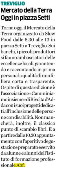 | 07/03/2026 | Eco di Bergamo | Mercato della Terra oggi in piazza Setti |