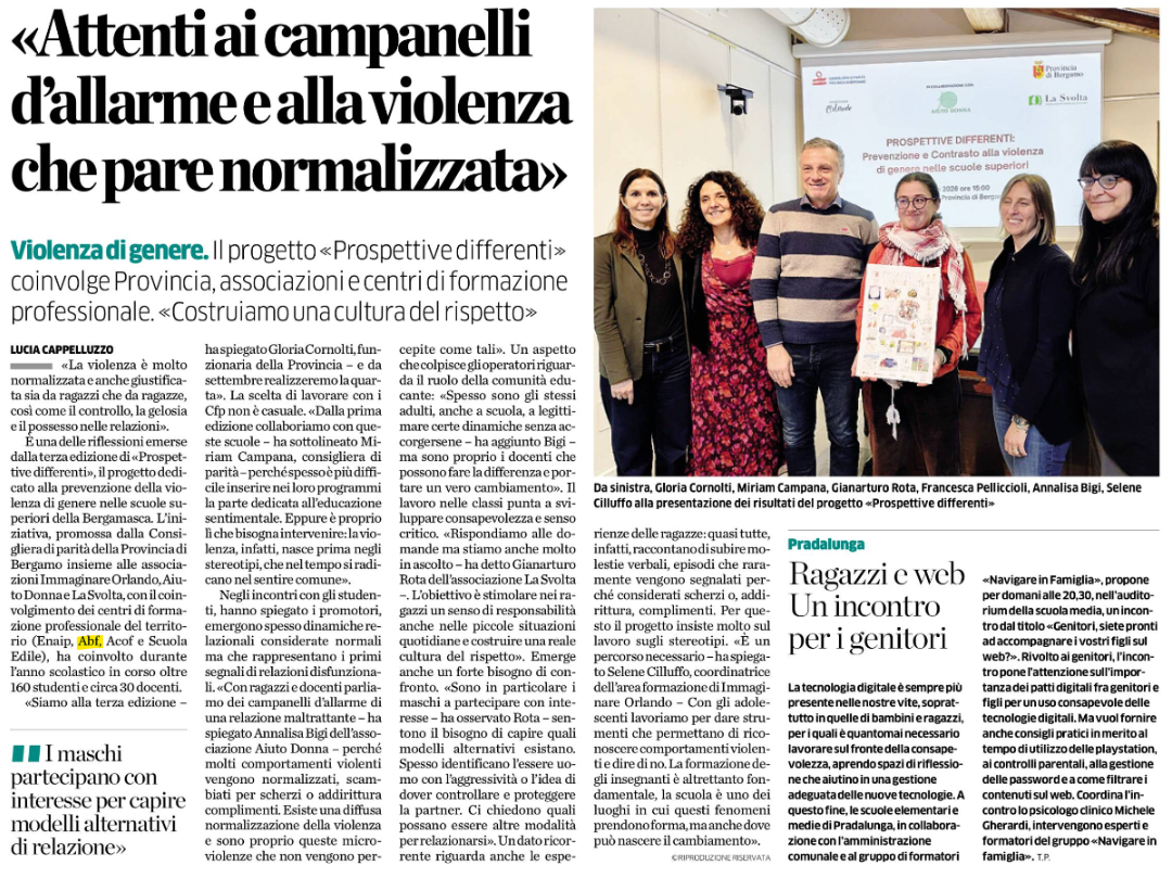 | 11/03/2026 | Eco di Bergamo | Attenti ai campanelli d’allarme e alla violenza che pare normalizzata |