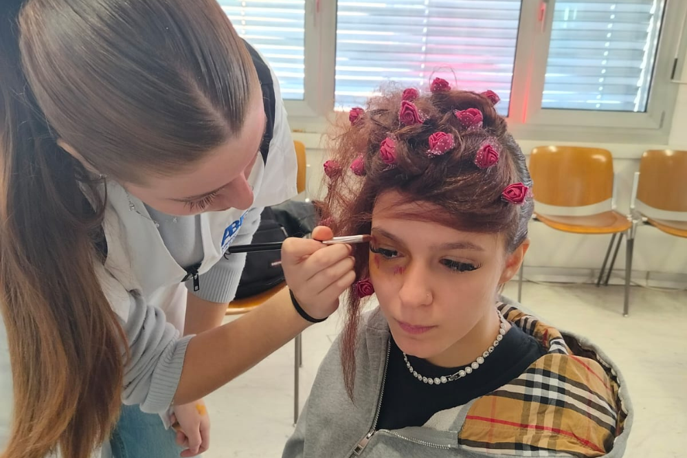 Le allieve del settore benessere hanno dato vita a una mini-sfilata di denuncia con trucchi e acconciature simboliche. Gli studenti del PPD hanno curato gli allestimenti, realizzando la locandina e lo striscione dell’evento.