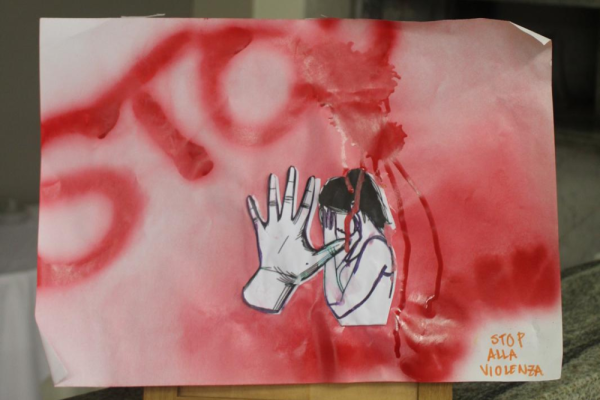 Tutti gli spazi della sede sono stati arricchiti da opere, disegni e cartelloni prodotte dagli allievi. Anche il coffee break è diventato un momento di sensibilizzazione e riflessione durante il quale gli allievi, insieme alla prof. Duzioni, hanno allestito la sala bar con simboli della giornata e hanno letto a tutto il personale presente delle frasi significative sulla violenza.