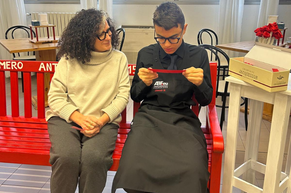 Gli studenti e il personale hanno indossato un capo rosso come gesto collettivo di solidarietà, mentre le classi di Pasticceria hanno realizzato spumiglie rosse, simbolo della vulnerabilità delle donne.