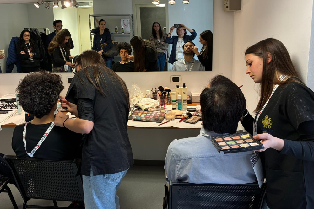 Domenica 12 aprile, invece, alcune allieve dei settori acconciatura ed estetica, accompagnate dai docenti Gamba, Chiapparini e Foppolo, hanno avuto l’opportunità di lavorare nel backstage dell’evento, occupandosi di trucco e acconciature degli speaker. Il lavoro è stato svolto con precisione e autonomia, sotto la guida esperta dei nostri docenti.